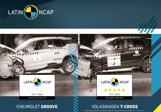 El Programa de Evaluación de Vehículos Nuevos para América Latina y el Caribe, Latin NCAP, presentó hoy la segunda ronda de resultados del año 2024 con un decepcionante resultado de cero estrellas para el Chevrolet Groove y un resultado de cinco estrellas para el Volkswagen T-Cross.