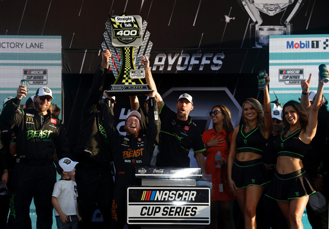 Un sobrepaso en la última vuelta después de un reinicio tardÃo, permitió a Tyler Reddick llegar a la victoria y asegurar un puesto en la carrera por el Campeonato con su victoria en Homestead-Miami Speedway. Reddick puso su auto a centÃmetros de la pared para superar a Blaney en las curvas finales.