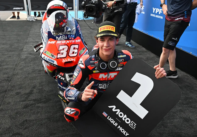 Alex Márquez (BK8 Gresini Racing MotoGP) volvió a cruzar la meta en segunda posición, mientras que Franco Morbidelli (Pertamina Enduro VR46 Racing Team) completó el podio, subiendo de nuevo al cajón por primera vez desde el GP de España 2021. Francesco Bagnaia (Ducati Lenovo Team) finalizó 4º.