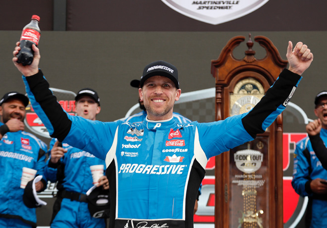 Denny Hamlin no tardó mucho en encontrar la fórmula del éxito en el Martinsville Speedway. Tomó la delantera en la vuelta 126 de 400 en la séptima carrera de la temporada y la mantuvo hasta la bandera a cuadros.