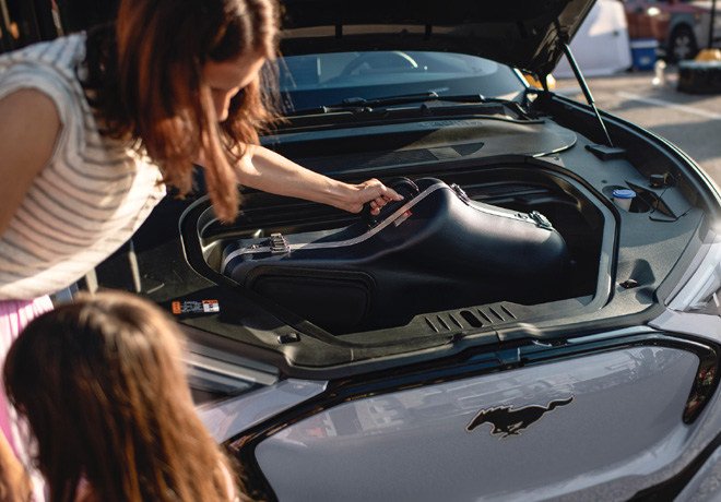 En el espacio donde tradicionalmente se ubicarÃa el motor, el Mustang Mach-E ofrece una sección de almacenamiento extra: el «frunk» (front trunk o baúl delantero), con una capacidad de 139,5 litros. Es ideal para guardar mochilas, compras u otros objetos y cuenta con un sistema de drenaje para facilitar la limpieza. Junto al baúl trasero de 402 litros, amplÃa las opciones de carga para diferentes necesidades.