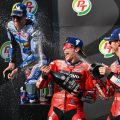 La situación se tensó aún más tras un adelantamiento de Di Giannantonio sobre Alex Márquez. El ’73’ intentó devolvérsela al instante, pero no pudo controlar su Ducati en la maniobra. Resultado: ambos pilotos se fueron largos. El italiano quedó relegado al fondo de la parrilla, mientras que Alex logró mantenerse en la séptima posición. Sin embargo, la acción no quedó sin consecuencias y el pequeño de la dinastía fue penalizado con una ‘long lap.