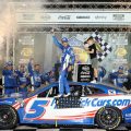 Tras las últimas paradas en boxes, Hamlin pudo acercarse a un segundo de Larson, pero nunca amenazó con tomar la delantera. Hamlin y Larson han terminado 1-2 en siete ocasiones. La carrera del domingo fue la primera de las siete veces que Larson se alzó con la victoria.