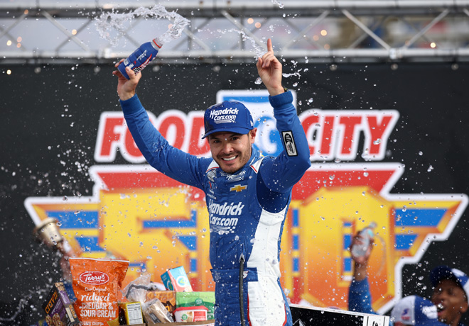 Larson, quien rozó el muro exterior en el vértice de las curvas 1 y 2 a cinco vueltas del final -sin consecuencias-, terminó 2.250 segundos por delante de Denny Hamlin (Joe Gibbs Racing), quien se quedó a un puesto de su tercera victoria consecutiva en la división mayor. El compañero de equipo de Hamlin, Ty Gibbs, quedó 6.679 segundos por detrás en el tercer lugar, en una carrera que se disputó sin bandera amarilla durante las últimas 235 vueltas.