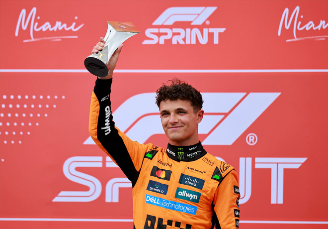 Lando Norris se alzó con la victoria en un dramático Sprint en el Gran Premio de Miami. El británico realizó una parada en boxes perfectamente sincronizada durante la salida del Auto de Seguridad para mantener el liderato hasta el final, por delante de su compañero de equipo en McLaren, Oscar Piastri.