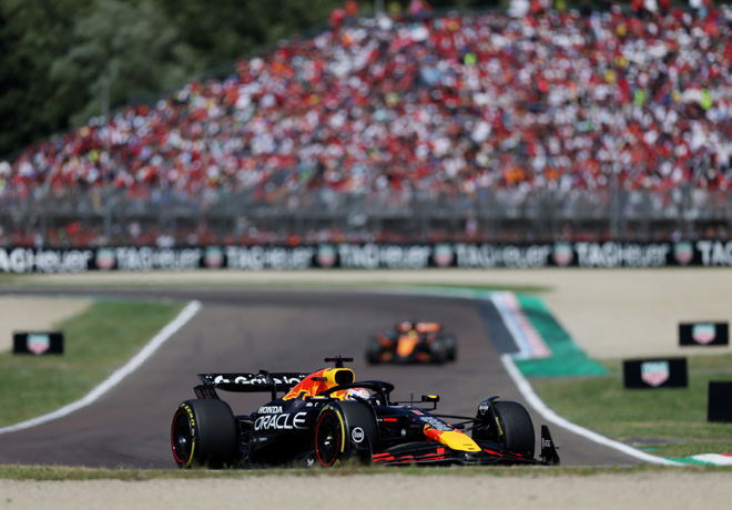 Max Verstappen ha conseguido una impresionante segunda victoria de la temporada en el Gran Premio de Emilia-Romaña. El holandés se apoderó de la primera posición en la salida antes de mantener su posición por delante de los McLaren en una tarde llena de acción que incluyó la intervención del Auto de Seguridad Virtual y luego la del Auto de Seguridad.