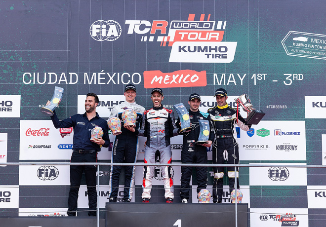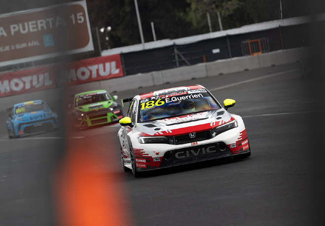 Esteban Guerrieri se recuperó de una complicada Carrera 1 para ganar la segunda de las tres carreras de la FIA TCR World Tour en la Ciudad de México, conteniendo a Yann Ehrlacher por solo una décima de segundo.