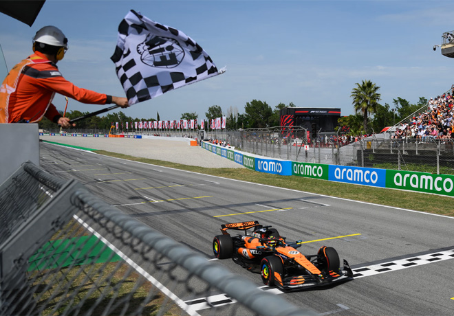 Oscar Piastri se ha consolidado como lÃder del campeonato al conseguir una contundente victoria en el Gran Premio de España. El australiano venció a su compañero de equipo, Lando Norris, en un doblete de McLaren tras un dramático final de carrera en el que Max Verstappen y George Russell chocaron.
