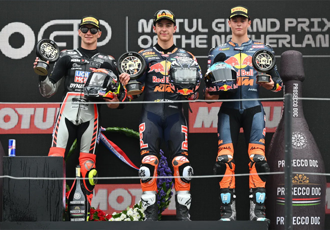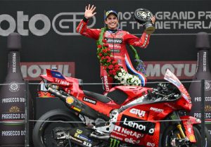 En un accidentado Gran Premio de los Países Bajos, en el que Alex Márquez (BK8 Gresini Racing MotoGP), aspirante al título, sufrió una caída, Marc Márquez (Ducati Lenovo Team) resistió la lucha de Marco Bezzecchi (Aprilia Racing) para conseguir su 68ª victoria en MotoGP por 0,6 segundos. El Nº93 y el Nº72 nos regalaron un fascinante Gran Premio en cabeza, con Francesco Bagnaia (Ducati Lenovo Team) a un par de segundos de la victoria en tercera posición.