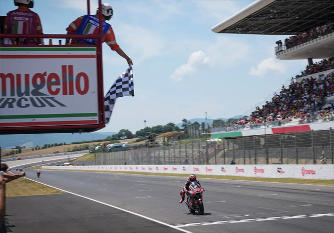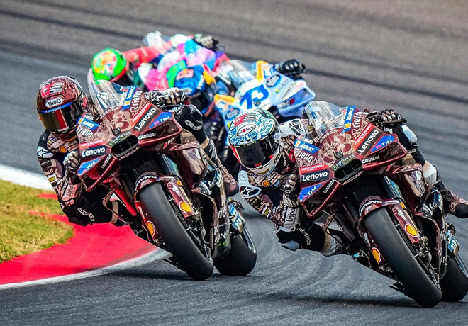 Marc Márquez (Ducati Lenovo Team) y Francesco Bagnaia (Ducati Lenovo Team) ofrecieron una auténtica batalla de titanes en el Autódromo Internacional de Mugello, protagonizando una lucha sin cuartel durante los primeros compases que mantuvo a los aficionados al borde del asiento.