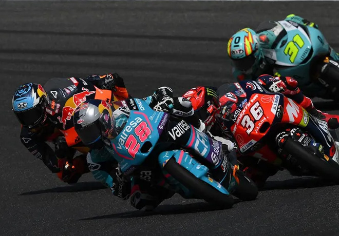 Morbidelli, tras cumplir con la penalización de «long lap», Raúl Fernández, y la dupla de KTM, Acosta y Binder, se situaron entre los nueve primeros, con el rookie Ai Ogura (Trackhouse MotoGP™ Team) cerrando el Top 10.
