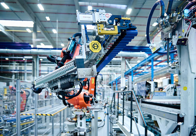 La espuma garantiza así la seguridad, estabilidad y durabilidad de la batería de alto voltaje. Luego, la carcasa se cierra, sella y remacha. En el paso final de ensamblaje, se instala el Energy Master, la unidad de control central, en la batería de alto voltaje. Se aplica un adhesivo sellador elástico permanente para asegurar un sellado confiable. Finalmente, cada batería de alto voltaje pasa por una inspección final del 100% para garantizar calidad, seguridad y funcionamiento.