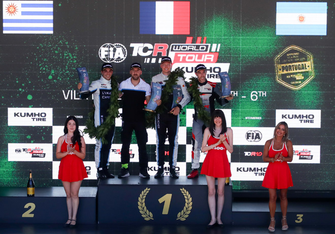 Yann Ehrlacher se alzó con la victoria de principio a fin en la primera carrera del TCR World Tour en Vila Real. El piloto de Cyan Racing superó a su compañero de equipo Santiago Urrutia en la lÃnea de meta para conseguir su tercera victoria de la temporada y ampliar su ventaja en la clasificación sobre Esteban Guerrieri, quien terminó tercero.