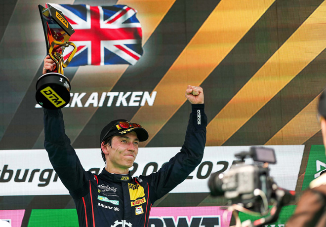 Tras 39 vueltas, Jack Aitken cruzó la meta como ganador de la carrera del sábado, su segunda victoria de la temporada que lo convierte en el nuevo lÃder del campeonato. «¡Fue una carrera increÃble! Todo puede cambiar rápidamente en el DTM, pero por el momento me siento genial liderando el campeonato. Nuestra parada tardÃa en boxes me permitió tener neumáticos más frescos en los tramos finales y poder adelantar a Ricardo Feller», declaró el piloto británico. Su compatriota y compañero de equipo, Ben Green, terminó segundo a 0.684, completando el doblete para Emil Frey Racing. Y Ricardo Feller (CH/Land-Motorsport) realizó una fantástica actuación, remontando ocho puestos y terminando tercero con el único Audi en la parrilla.