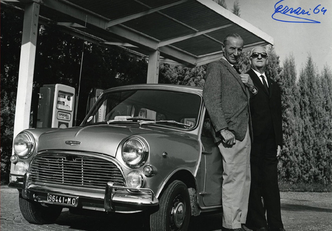 Cuando debutó la versión más deportiva, el Mini Cooper, solo era cuestión de tiempo antes de que Ferrari adquiriera un Mini para sí mismo. El número exacto de Minis que poseía Enzo Ferrari es incierto. John Cooper afirmó en una entrevista que Ferrari poseía tres diferentes modelos Cooper S. Sin embargo, es seguro que el legendario empresario poseía al menos dos Minis. Uno de ellos era un Cooper 1100 S, que más tarde le dio a su hijo Piero.