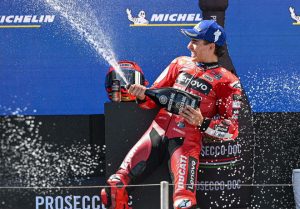 Marc Márquez (Ducati) sigue dejando huella y demostrando que no tiene rival. Con su séptimo doblete consecutivo de la temporada y su décima victoria de domingo en 14 rondas, el líder indiscutible confirma que este es el año de su séptimo título en la clase reina, ampliando su ventaja en la general a pasos agigantados y acercándose cada vez más a su primera ‘bola de partido’ en Misano dentro de tres semanas, si consigue salir con 10 puntos más de los que tiene ahora sobre Alex Márquez (Gresini Racing MotoGP) del GP de Catalunya. Tras él, Pedro Acosta (KTM) y Marco Bezzecchi (Aprilia Racing) completaron el podio, mientras que un heroico Jorge Martín (Aprilia Racing) finalizó 4º.