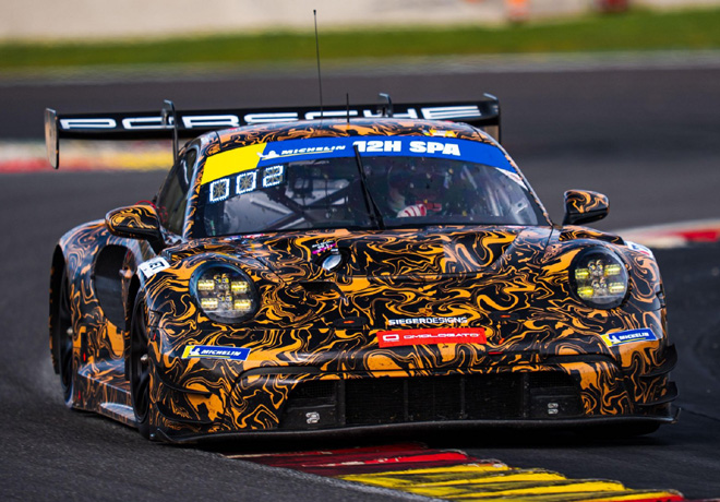A mediados de abril, se hizo una prueba clave en carrera, cuando un vehículo de desarrollo inscripto por Herberth Motorsport compitió en las 12 Horas de Spa-Francorchamps, en el circuito del Gran Premio de Bélgica. El expiloto Júnior de Porsche y actual campeón de IMSA GTD-Pro, Laurin Heinrich, junto con sus compatriotas alemanes Ralf Bohn y Alfred Renauer, consiguieron el segundo puesto en la clasificación general de la carrera, que se disputó en dos partes.