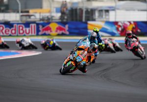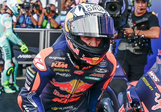 En su intento de alcanzar la posición de ’73’, Pedro Acosta sufrió un problema mecánico en su KTM que le obligó a retirarse de la carrera, en concreto perdió la cadena. Esto devolvió a ‘El Diablo’ a la cuarta posición, aunque a casi tres segundos del piloto de Gresini. El murciano no fue el único en abandonar a falta de 18 vueltas para el final, ‘Pecco’ Bagnaia perdió la rueda delantera y se fue al suelo, poniendo fin a su Gran Premio de casa, al igual que Enea Bastianini (KTM).