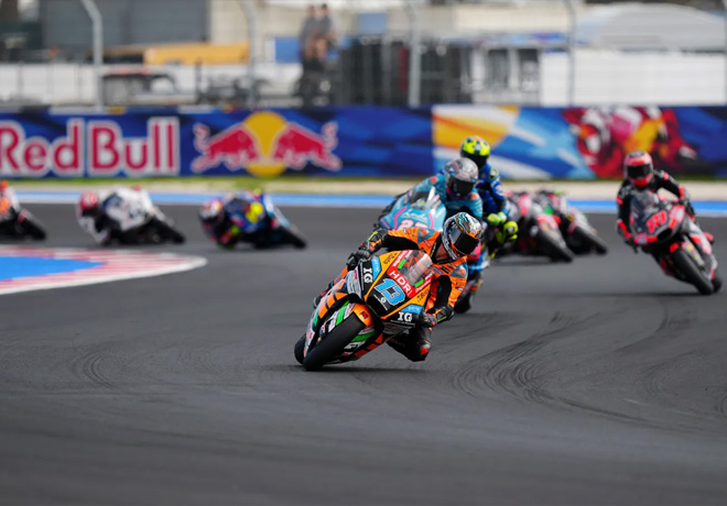 Con la intención de lograr un brillante doblete ante su público y sin ceder ante el líder, Bezzecchi apretó los dientes para engancharse a la rueda del ’93’, ambos recibiendo un aviso por superar los límites de pista. En un constante intercambio de vueltas rápidas, con los neumáticos ya al límite y la carrera llegando a su fin, finalmente Marc Márquez consiguió sumar su undécima victoria de la temporada, por delante de Bezzecchi.