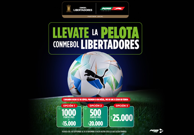 Puma Energy, Partner Local de la CONMEBOL Libertadores, lanza una promoción imperdible para todos los fanáticos del fútbol que eligen sus estaciones de servicio: la posibilidad de llevarse la pelota oficial de la CONMEBOL Libertadores.