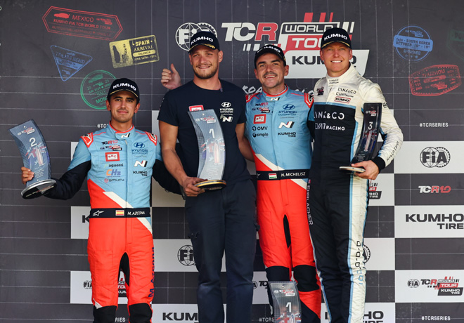Norbert Michelisz fue declarado ganador de la primera carrera del TCR World Tour en The Bend después de que su compañero en Hyundai, Mikel Azcona, recibiera una penalización de cinco segundos por falsa largada.