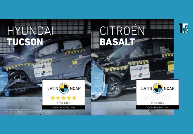 El Programa de Evaluación de Vehículos Nuevos para América Latina y el Caribe, Latin NCAP, publica hoy la sexta ronda de resultados del año 2025 con las primeras cinco estrellas de Hyundai en la historia del Programa logradas por el Tucson y cero estrellas para el Citroën Basalt. Hasta el momento, los 10 modelos evaluados de Stellantis por Latin NCAP bajo el protocolo vigente desde 2020 no han logrado obtener más de dos estrellas.
