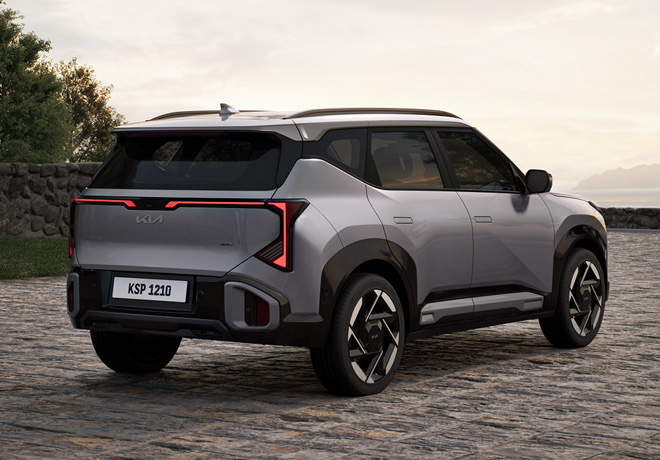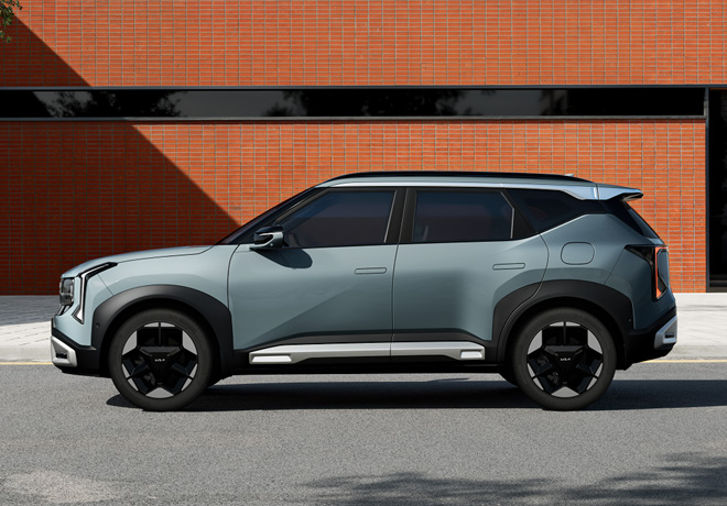 - Diseño frontal: parrilla más ancha con la firma de iluminación de mapa estelar de Kia y secuencia dinámica de luces de bienvenida; manillas de puertas a ras para mejorar la aerodinámica y la sofisticación visual.