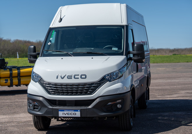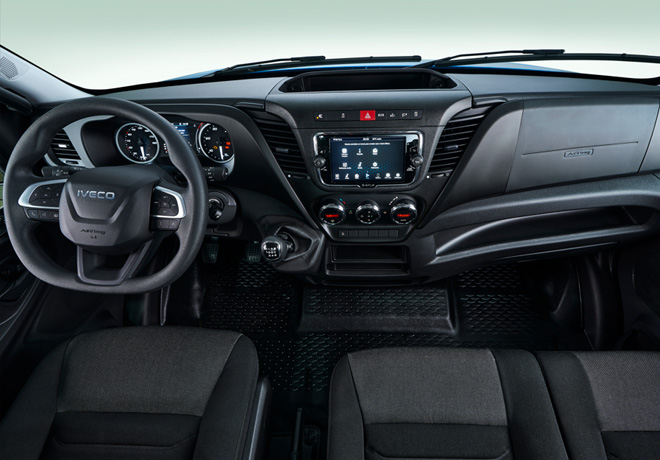 A esto se suman mejoras en confort y habitabilidad, como nuevas butacas más ergonómicas, butacas rebatibles con espacio de guardado, un renovado volante con regulación en altura y profundidad, mayor conectividad gracias a la central multimedia, el modo de conducción ECO y el nuevo diseño de identidad con el logo actualizado de IVECO.