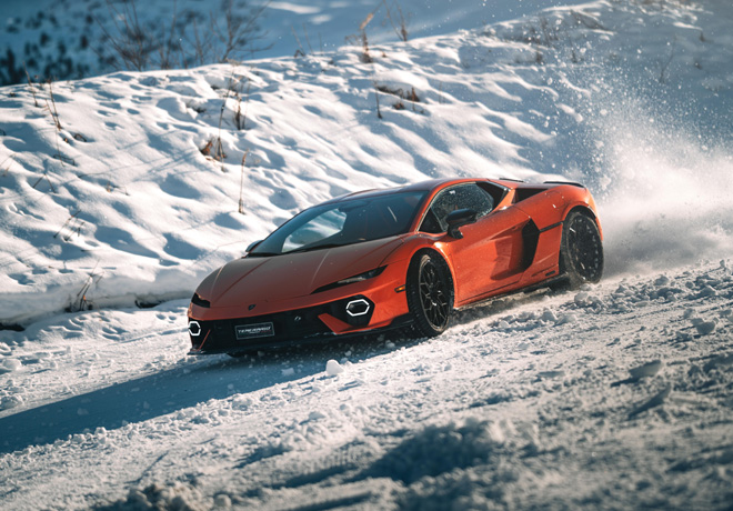 - Lamborghini Temerario derrapa en la nieve francesa.