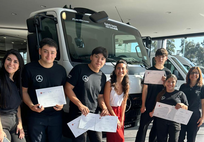 Durante los seis meses de formación, los participantes incorporaron conocimientos básicos en mecánica, motores, electricidad, ventas y postventa, dictados por especialistas de la marca y voluntarios certificados, entre ellos integrantes del equipo de Truck Training, con acreditación internacional otorgada por Daimler Truck AG. La propuesta se complementó con talleres de liderazgo, autoconocimiento y trabajo en equipo, con el acompañamiento permanente de Fundación Pescar.