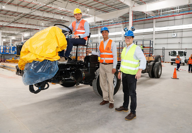 Tras el acto de firma, las autoridades recorrieron distintas áreas del complejo, incluyendo los sectores donde se instalarán las lÃneas de producción de diferentes versiones de los camiones Accelo y Atego y los chasis de buses OH y OF; y la planta de REMAN (piezas remanufacturadas). Allà se interiorizaron sobre el alcance del proyecto y su impacto para la comunidad local.