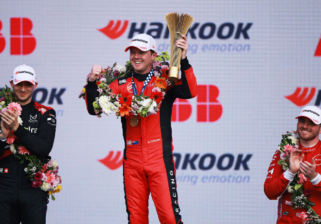 Sin embargo, Cassidy logró más tÃtulos tras su tercer puesto en la primera carrera de la temporada en Sao Paulo. Los retrovisores de Mortara se llenaron del vigente campeón, Rowland, en la amplia curva final, mientras los cinco primeros cruzaban la lÃnea con un segundo de diferencia.