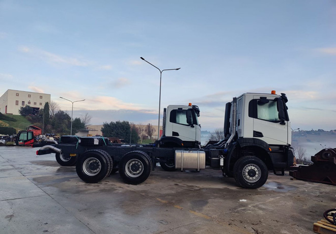El IVECO T-Way fue desarrollado específicamente para aplicaciones off-road severas, combinando robustez estructural, alto desempeño y confiabilidad mecánica. En su versión 6×6, se destaca por un chasis reforzado de alta resistencia, ejes y suspensiones preparados para cargas extremas y una arquitectura diseñada para soportar trabajos continuos en condiciones de alta exigencia, como las que impone la actividad minera. La distancia entre ejes y la configuración del conjunto permiten una excelente capacidad de integración de implementos especiales, como perforadoras, grúas o carrocerías técnicas.