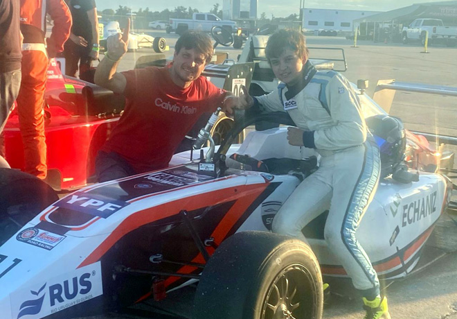 El joven talento cordobés Lázaro Bainotti inscribió hoy su nombre en la historia del automovilismo al consagrarse campeón del Torneo de Invierno de la South East Fórmula Series (SEFS). Con apenas 13 años, el piloto argentino aseguró el tÃtulo tras una actuación dominante en el legendario circuito de Sebring International Raceway.