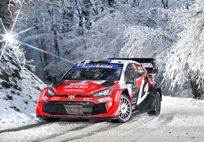 Sin embargo, al principio del dÃa, la remontada de Solberg estuvo a punto de desmoronarse en el segundo paso de La Bréole / Bellaffaire. En condiciones que cambiaban rápidamente, quedó atrapado en un trozo de nieve y se deslizó a través de una cerca hacia un campo nevado. El sueco de algún modo mantuvo su GR Yaris Rally1 en movimiento, se reincorporó a la carretera y, sorprendentemente, consiguió el mejor tiempo en la etapa.