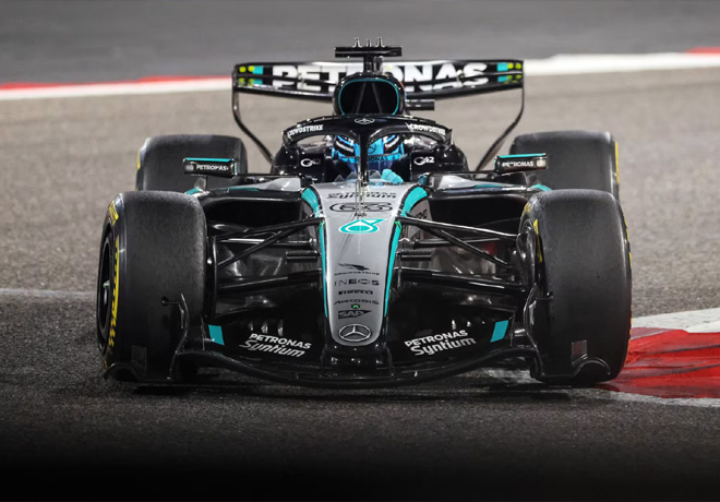 George Russell terminó al frente el primer día del segundo test de pretemporada de 2026 en Bahrein. Segundo fue Oscar Piastri, de McLaren, y tercero el Ferrari de Charles Leclerc.