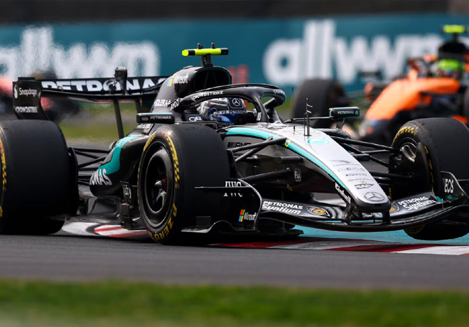 Al apagarse las luces en el Circuito de Suzuka, Piastri realizó una salida espectacular y se puso al frente en la primera curva, mientras que los Mercedes retrocedÃan. Sin embargo, los dos Mercedes iniciaron una remontada, con George Russell intentando arrebatarle el liderato al McLaren, aunque sin éxito.