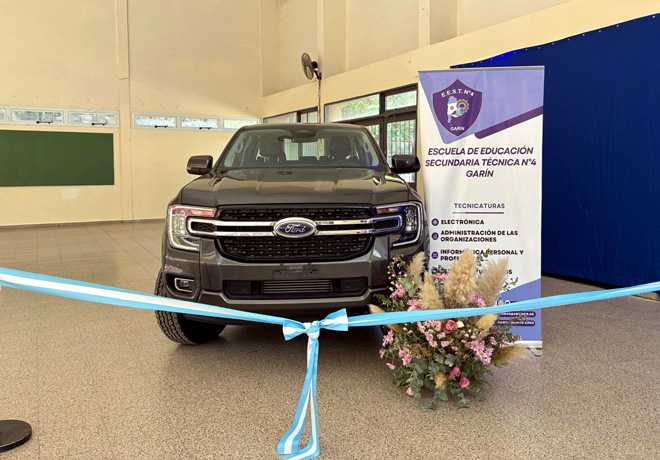 En su continuo compromiso con la comunidad, Ford Argentina realizó la donación de una nueva Ranger fabricada en Planta Pacheco a la «Escuela de Educación Secundaria Técnica Nº4» de la localidad de GarÃn, partido de Escobar, con el objetivo de potenciar la formación profesional de sus estudiantes.