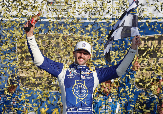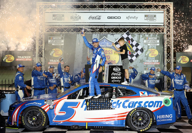 En los últimos instantes de la carrera disputada en Kansas, Chase Elliott logró la victoria y consiguió un puesto en la ronda de los ocho de los Playoffs de la mayor división de NASCAR. Sigue leyendo