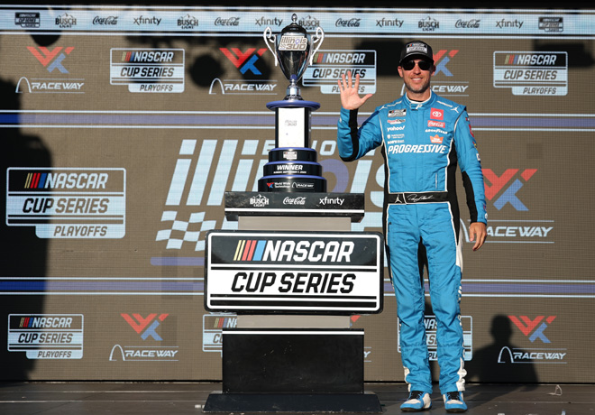 Cuatro neumáticos nuevos resultaron ser la mano ganadora para Denny Hamlin con el Toyota Nº11 de Joe Gibbs Racing para vencer en la apertura de la ronda de los 8 de los Playoffs de la Cup Series en Las Vegas Motor Speedway. Sigue leyendo