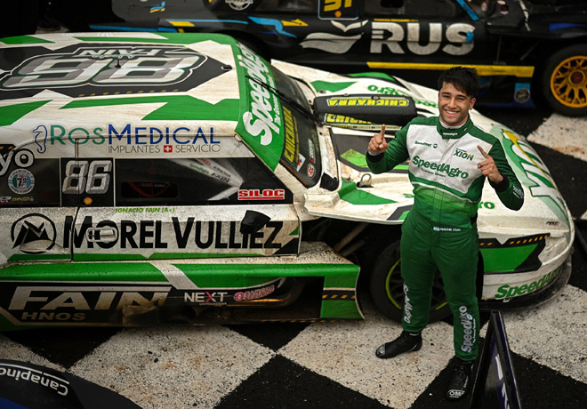 Rodrigo Lugón logró su primera victoria en el TC Pista, justamente en su provincia, en el Autódromo Oscar Cabalén de Alta Gracia, Córdoba. Segundo finalizó Marco Dianda, nuevo lÃder del torneo, a 2.876, y tercero José Rasuk, a 19.215. Sigue leyendo
