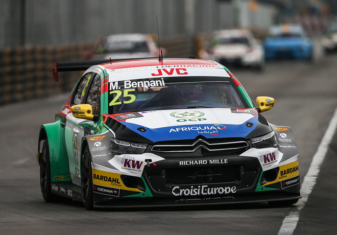 Mehdi Bennani ganó la carrera inaugural en Macao, después de que el contendiente al título del Campeonato Mundial de Turismos de la FIA Norbert Michelisz estuvo involucrado en un accidente que detuvo la acción a poco del inicio en las calles de Macao. Bennani hizo un comienzo perfecto desde su posición de poleman con su Citroën C-Elysée y nunca fue acosado por Tom Coronel, quien se consolidó en el segundo lugar. Sigue leyendo