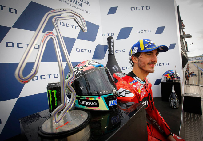 La cuatro victorias consecutivas con Ducati había estado fuera del alcance de mitos como Casey Stoner, Jorge Lorenzo o Andrea Dovizioso, pero 'Pecco' fue capaz de marcar todo un hito en el Circuito Mundial de Misano Marco Simoncelli al sumar un triunfo clave en la carrera por el título al resistir la presión de su futuro compañero, Enea Bastianini (Gresini Racing MotoGP), para subir a lo más alto del podio acompañado por 'La Bestia' y Maverick Viñales (Aprilia Racing). Sigue leyendo