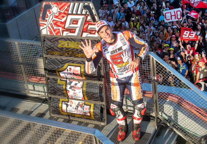 La situación era favorable para Marc Márquez (Repsol Honda Team) con Andrea Dovizioso (Ducati Team) rodando 5º; pero la incertidumbre se podía sentir. Quedaban siete vueltas para terminar la última carrera del año; y pese a que no lo necesitaba, Márquez decidió arriesgar y se puso a liderar superando a Johann Zarco (Monster Yamaha Tech3). Pero a final de la recta de meta cometió un error, falla que solventó con la enésima salvada de la temporada. Una salvada y “un codo” que valen un Campeonato del Mundo de MotoGP. Sigue leyendo