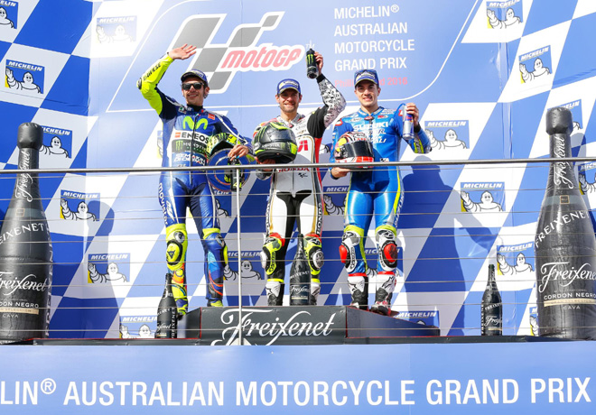 El Gran Premio de Australia de MotoGP disputado en el circuito de Phillip Island finalizó con la victoria de Cal Crutchlow (LCR Honda), quien cruzaba línea de meta con una ventaja de 4’2 segundos sobre Valentino Rossi (Movistar Yamaha MotoGP) y de más de cinco sobre Maverick Viñales (Team Suzuki Ecstar). Sigue leyendo