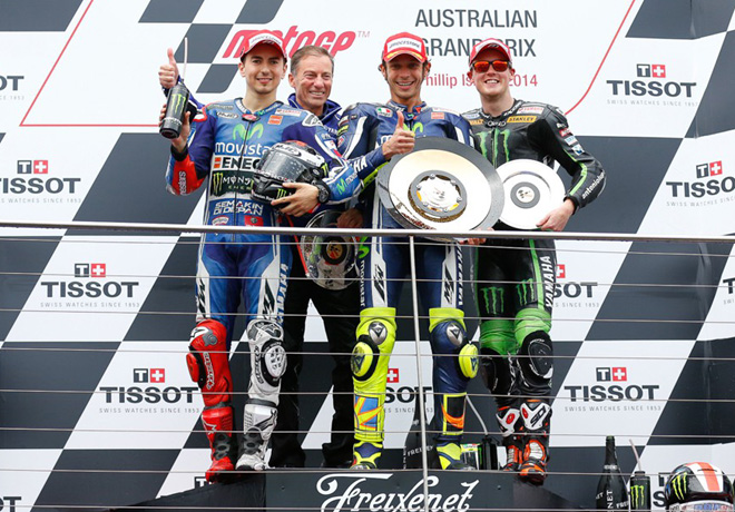 Valentino Rossi (Movistar Yamaha) fue el vencedor del Gran Premio de Australia corrido en el circuito de Phillip Island, logrando su segundo triunfo de la temporada en su presentación número 250 en la categorÃa reina, imponiéndose por delante de Jorge Lorenzo y Bradley Smith. Marc Márquez se cayó cuando lideraba la prueba, y Dani Pedrosa abandonó tras una choque con Andrea Iannone. Sigue leyendo