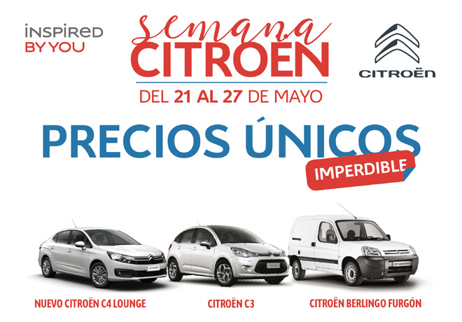 Desde el próximo lunes 21 de mayo y hasta el domingo 27 inclusive, los interesados podrán acercarse a un concesionario oficial Citroën y acceder a beneficios exclusivos para obtener su próximo 0Km., con una tasa del 0%; un plazo de 12; 18 ó 24 meses, y una financiación de hasta $ 250.000.-, con bonificaciones y precios especiales para muchos modelos de la marca. Sigue leyendo