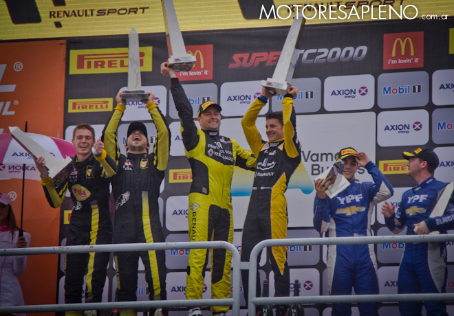 Emocionante; así fue la definición de la carrera y el sentimiento expresado por Emiliano Spataro y Christian Ledesma al imponerse en los “200 Kilómetros de Buenos Aires” de Súper TC2000 con el Renault Fluence del Renault Sport. Hoy, al igual que sus escoltas Juan Ángel Rosso-Sebastián Peluso (Escudería FELA) y Bernardo Llaver-Santiago Urrutia (Equipo YPF Chevrolet), colocaron sus nombres en el podio de la 12ª edición del clásico porteño. Sigue leyendo