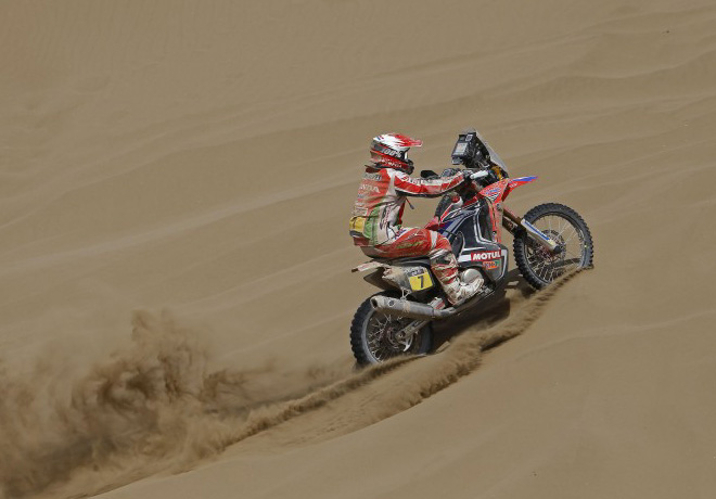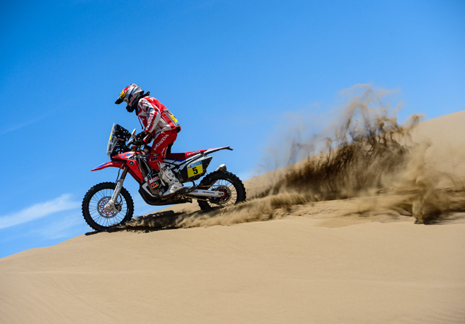 Tras protagonizar una jornada para el olvido el lunes en la ruta hacia Iquique con más de 3 horas perdidas, Helder Rodrigues ha reaccionado como el campeón que es en Calama con una victoria espléndida e imparable. Paulo Gonçalves, segundo en la meta, mantiene la presión sobre Marc Coma.