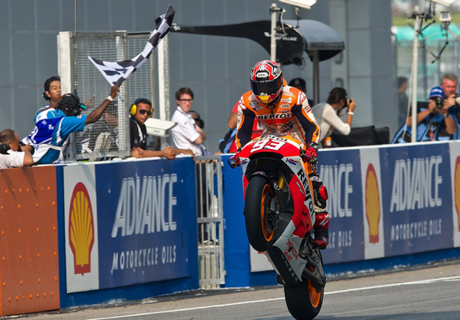 Marc Márquez (Repsol Honda Team) se reencontró con el triunfo en el Gran Premio de Malasia imponiéndose a Valentino Rossi tras un largo duelo bajo unas condiciones extremas de calor. Jorge Lorenzo completó el podio, mientras que Dani Pedrosa tuvo que abandonar tras caerse en dos ocasiones. Sigue leyendo